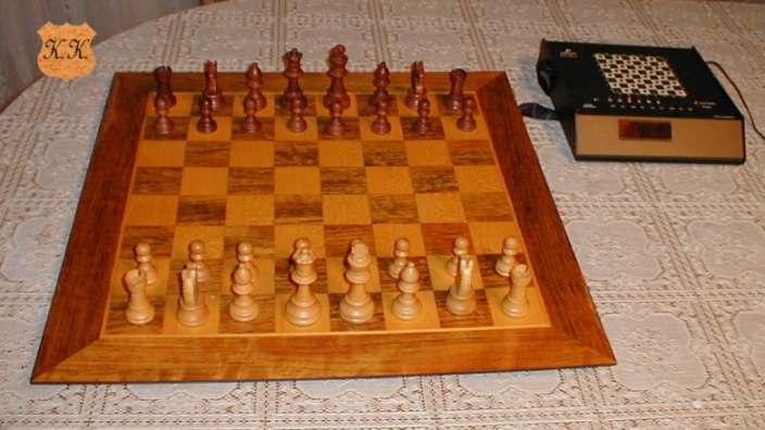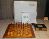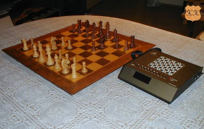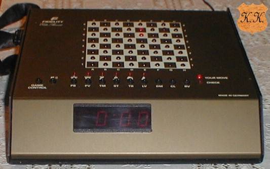 Fidelity Elite Privat Auf ein Gerät das ich besonders stolz bin ist der Elite Privat, solcher Art Fidelity Geräte muss man wohl mit der Lupe suchen. Ein ultra flaches Edelholz-Magnetsensorenbrett mit externen Bedienteil mit einem Display und einem Schachbrett mit Dioden. Er hat also keine Feldleds, sondern die Züge werden am Bedienteil mit Leuchtdioden angezeigt. Dieses Gerät wurde nur in Europa verkauft. Die Sprachausgabe ist deutsch. Der Preis betrug 614,- EURO. Meiner ist in einem sehr schönen Zustand mit sämtlichen Zubehör, inkl. Verpackung. |