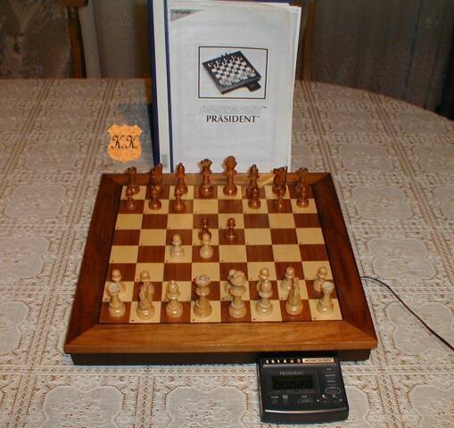 Dieser Saitek Computer ist eigentlich kein richtiger Klassiker der Schachcomputerszene. Was dieses Gerät aber auszeichnet ist die Austattung. Er ist aus Holz, für ein mittelklasse Gerät ausgesprochen Spielstark, Man kann sogar das Anzeigemodul entfernen und trotzdem spielen. Er hat einfach alles was einen Schachcomputer liebenswert machen und ist der absolute Geheimtipp für den ambitionierten Hobbyspieler. Ich empfehle diesen Computer jedesmal wenn wer ein Hobbyspieler bei mir wegen einem guten Schachcomputer anfragt. Sein Konkurent ist für mich die Mephisto Academy, da sie ebenfalls die selben ausgezeichneten Eigenschaften hat. Natürlich gibt es bessere Geräte als die beiden, aber nicht in diesem Preis,- Leistungsverhältnis. Eventuell könnte man am ehesten die Polgarmodule mit Exclusive oder Modularbrett damit vergleichen. Das sind meiner Meinung nach die drei besten Schachcomputer, für Spieler die nicht gerade einen Computer mit weit über 2000 Elo brauchen. Ein Hobbyspieler wird vermutlich auch niemals die Spielstärke, der 3 von mir empfohlenen Geräten erreichen und somit ist ein Spielspaß für ewig garantiert. Der Präsident war um ca. 350,- Euro erhältlich. Mein Präsident ist sehr gut erhalten und einzig die Verpackung ist nicht mehr vorhanden. |